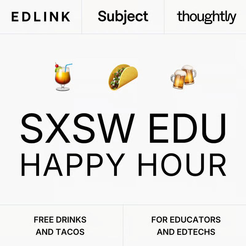 We’re bringing educators and edtech companies together for a relaxing afternoon of great drinks and even better conversation. Brought to you by Edlink, Subject, and Thoughtly.