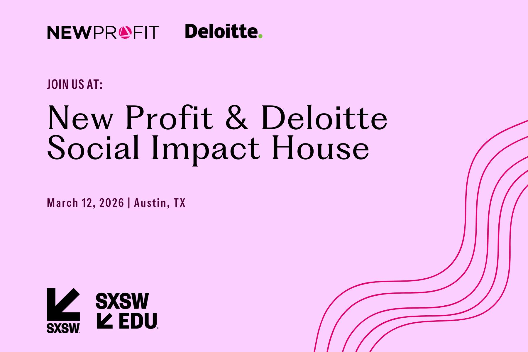 Escape the conference bustle and connect with the social impact community at SXSW EDU. The New Profit and Deloitte Social Impact House is your landing pad—a welcoming space to recharge (your devices and yourself), forge new collaborations, and experience the power of our community in action.