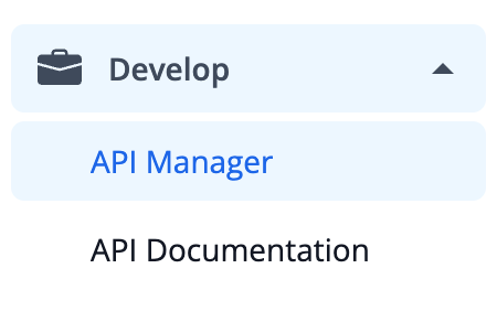 The API Manager will be an option underneath "Develop" in the left-hand bar on the settings page. You must also have the ability to create API Tokens.